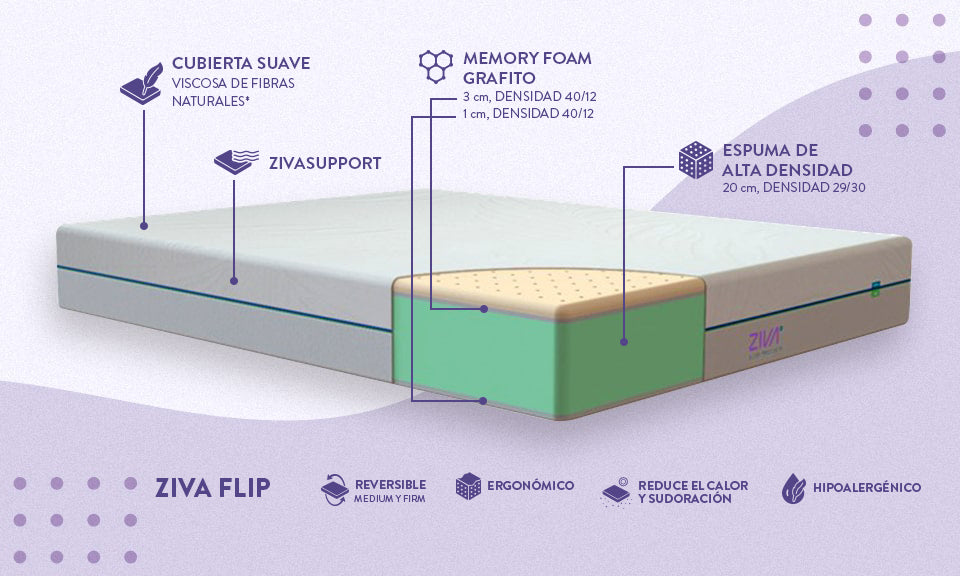Con él tienes dos formas para descansar, elige entre el lado “firm” o “medium” para una mayor versatilidad y comodidad.